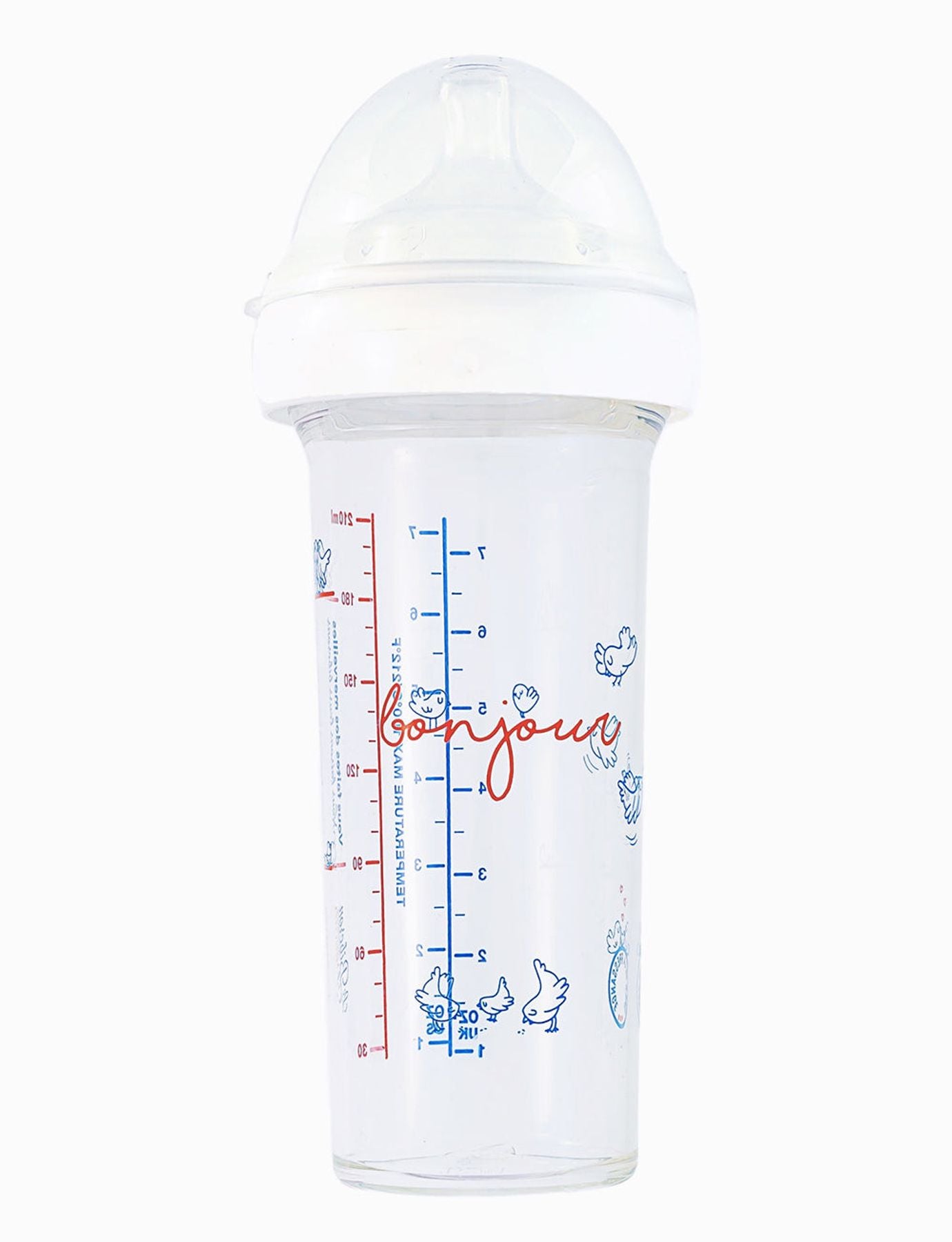 Ce biberon « Bonjour » de 210 ml hyper polyvalent permet d’accueillir jusqu’à 7 dosettes de lait en poudre et il appartient à la famille des biberons gigognes intégralement fabriqués en France. vous pouvez les combiner avec deux autres biberons : un de 360 ml et un de 210 ml. Toutes nos bouteilles sont en Tritan puériculture c’est ce qui leur confère cette transparence si unique.