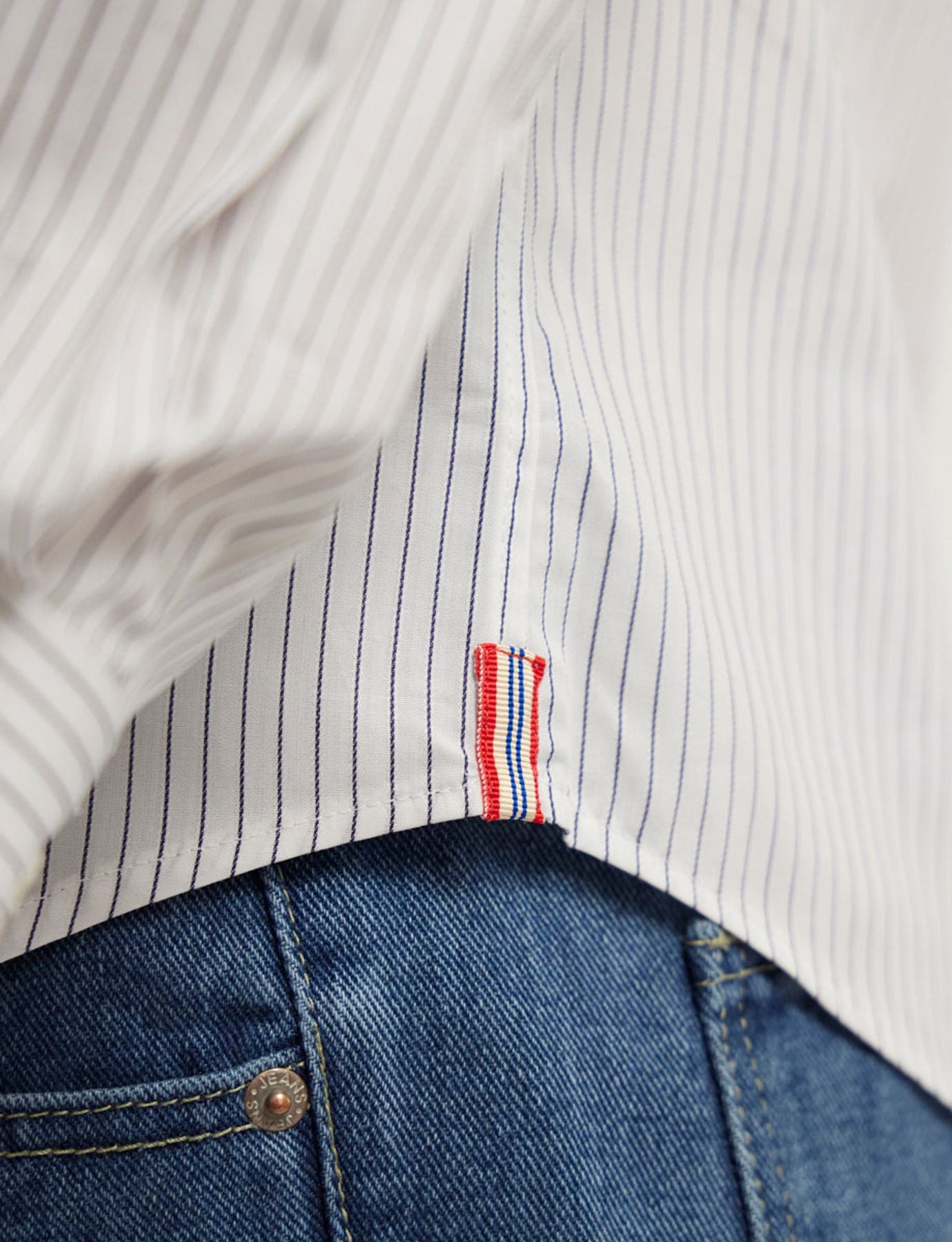 Le sens de l’élégance décontractée Ines de la Fressange Paris appliqué à une ligne de chemises pour hommes ! Pour la chemise Olivier, une coupe droite légèrement cintrée, qui souligne la silhouette sans l’enfermer, un col italien et des manches ajustées. Dans une magnifique popeline 100% coton de haute qualité, au toucher doux et soyeux. Chaque détail est étudié: patte de boutonnage doublée sur le devant avec surpiqûres, poignets à double boutonnage et galon-signature Ines de la Fressange Paris. Cette chemise peut être portée de manière décontractée, au-dessus du pantalon, comme compléter un costume ou une tenue formelle, élégance assurée en toute circonstance !