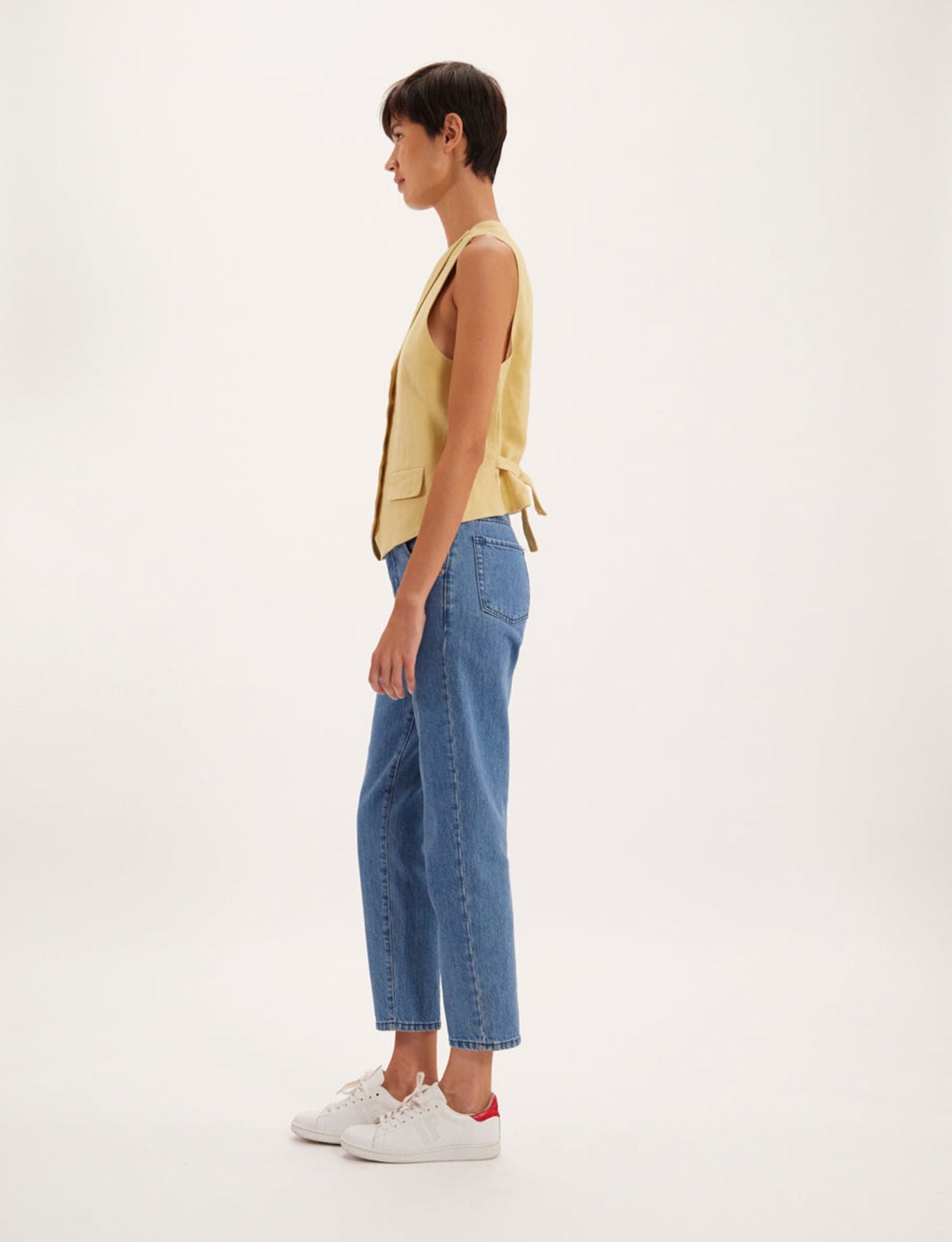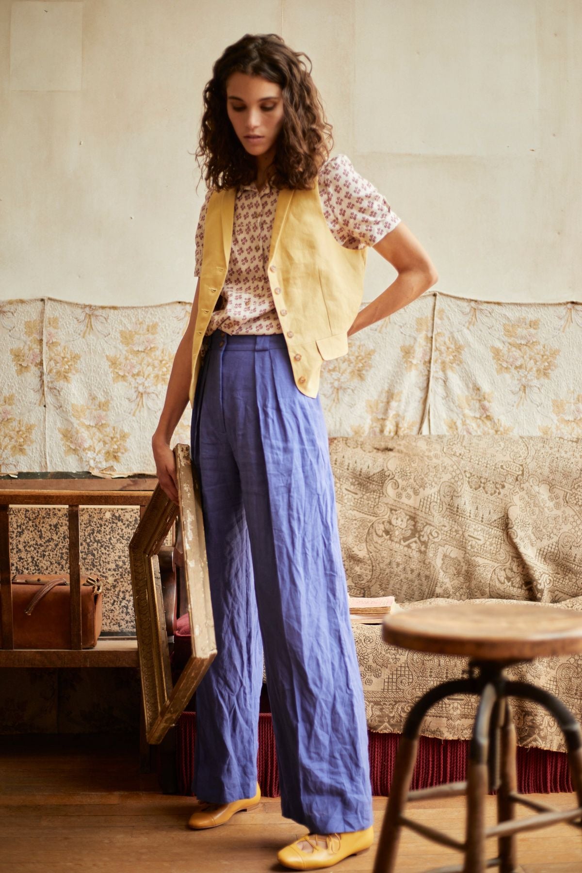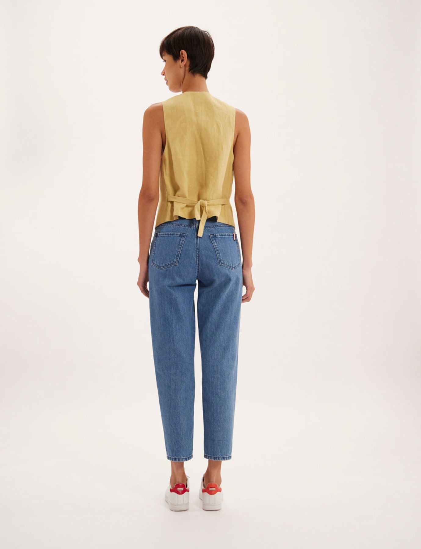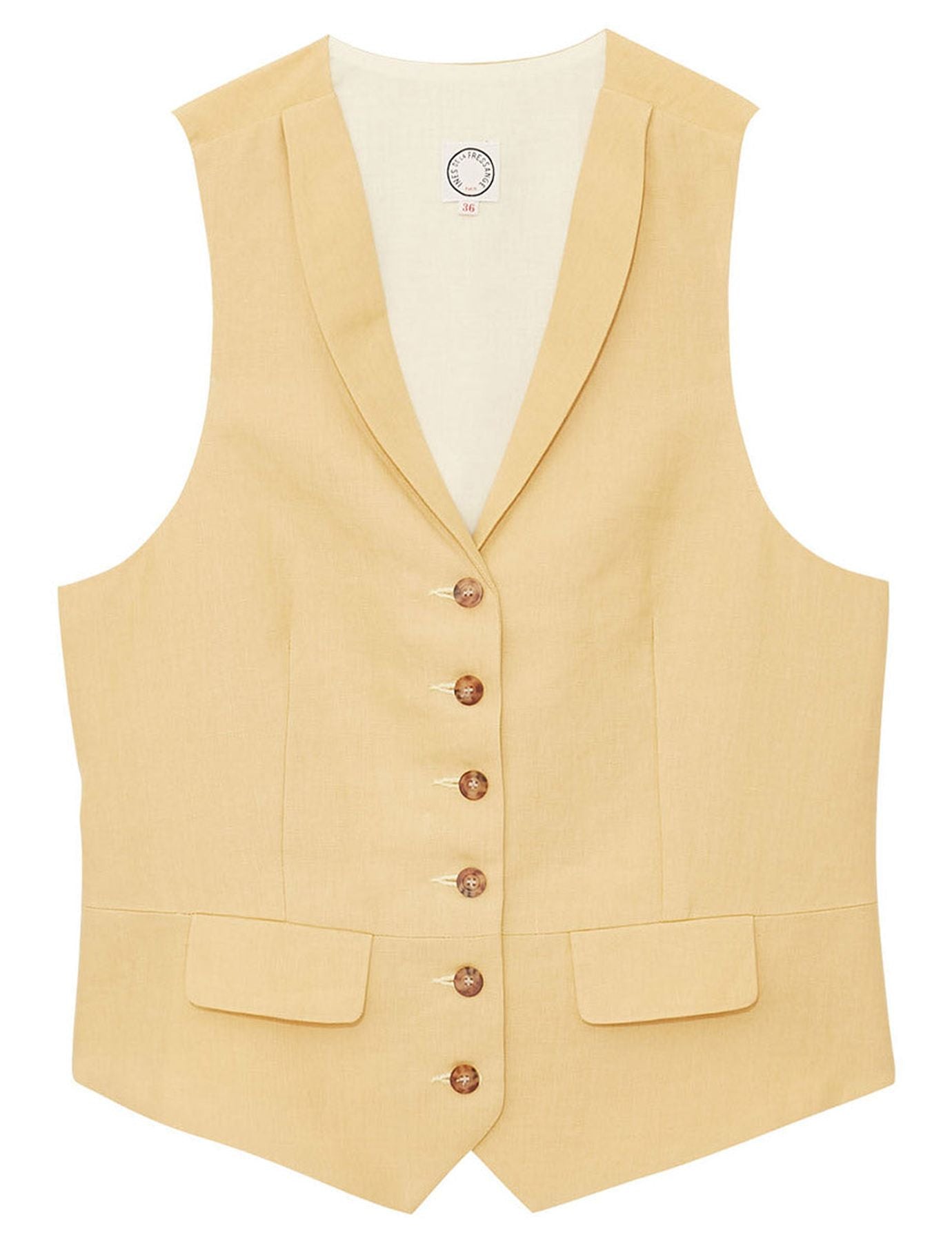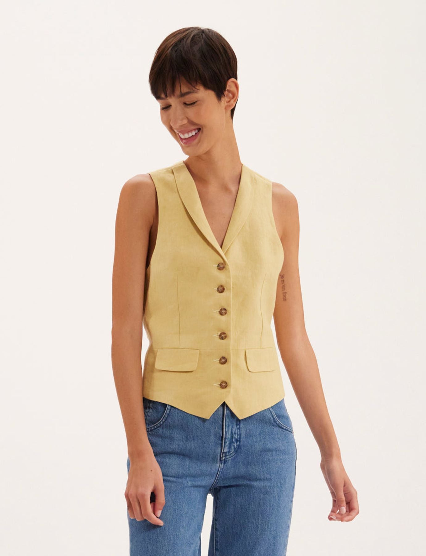 La Maison Ines de la Fressange Paris vous propose l’élégant gilet Robinson, il peut se porter avec une chemise ou à même la peau.