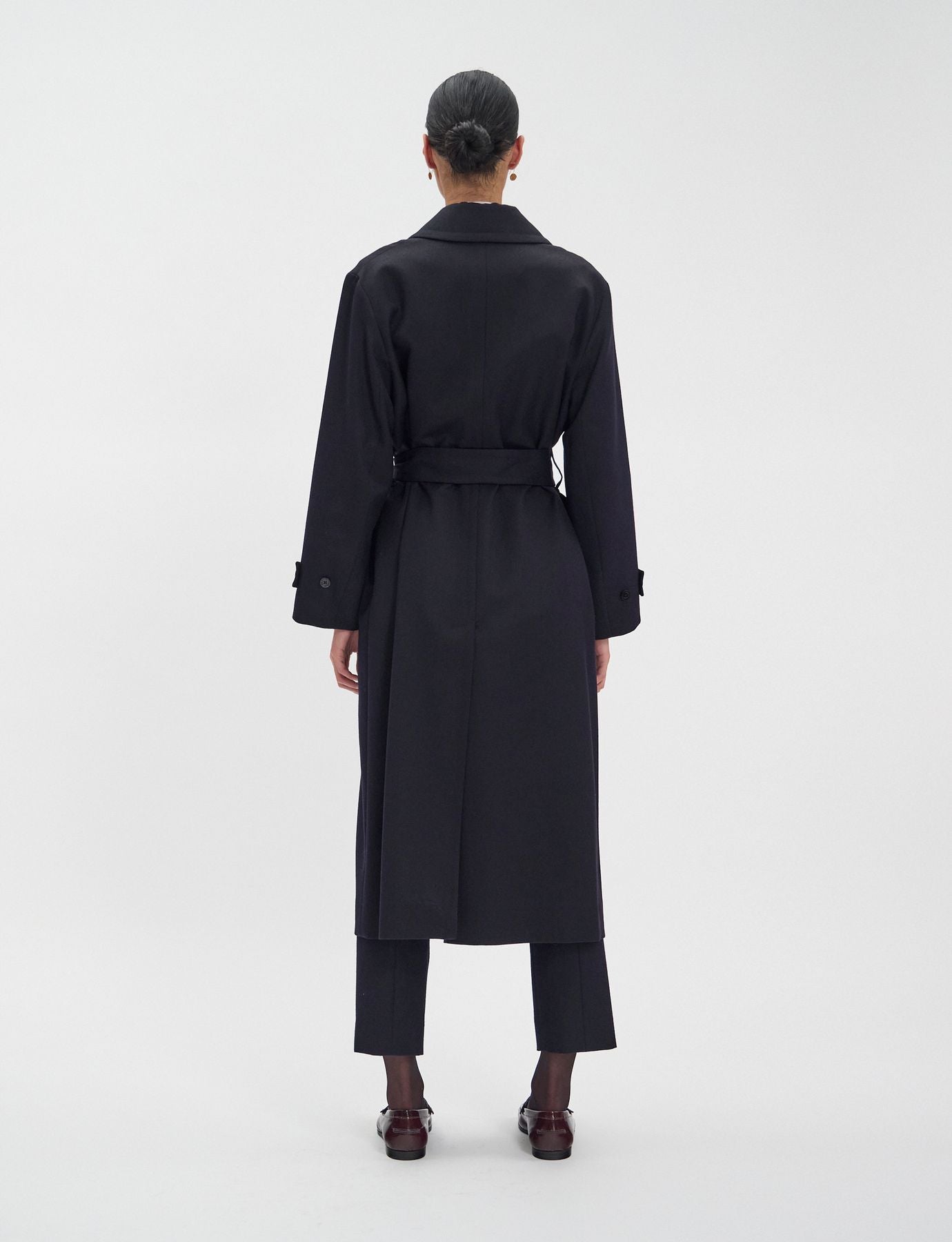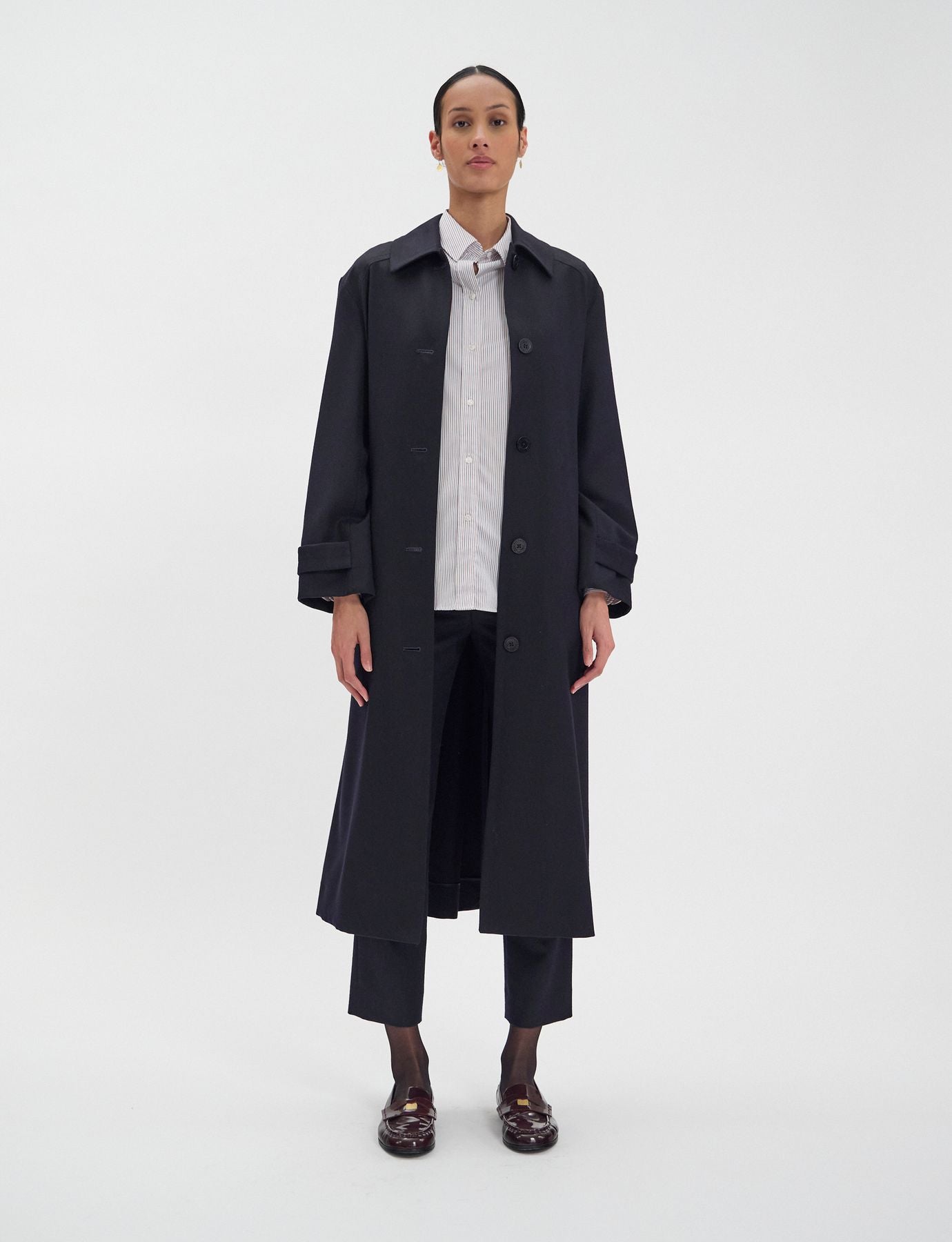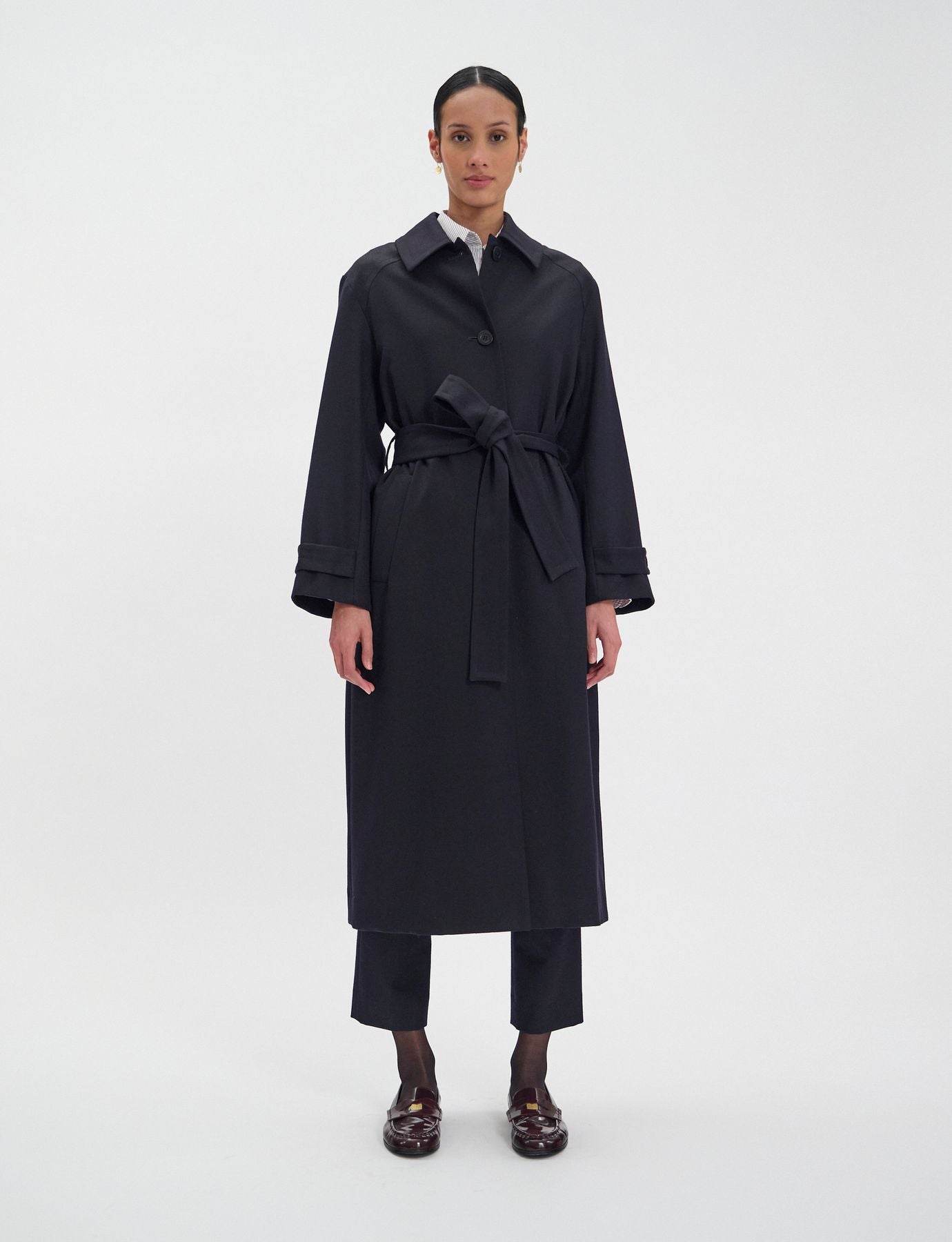 Esmé est un manteau d’une grande élégance, sa coupe simple, large et souple, sa ceinture qui met en valeur la taille, ses tissus riches et raffinés en font un indispensable des saisons d’automne et d’hiver.