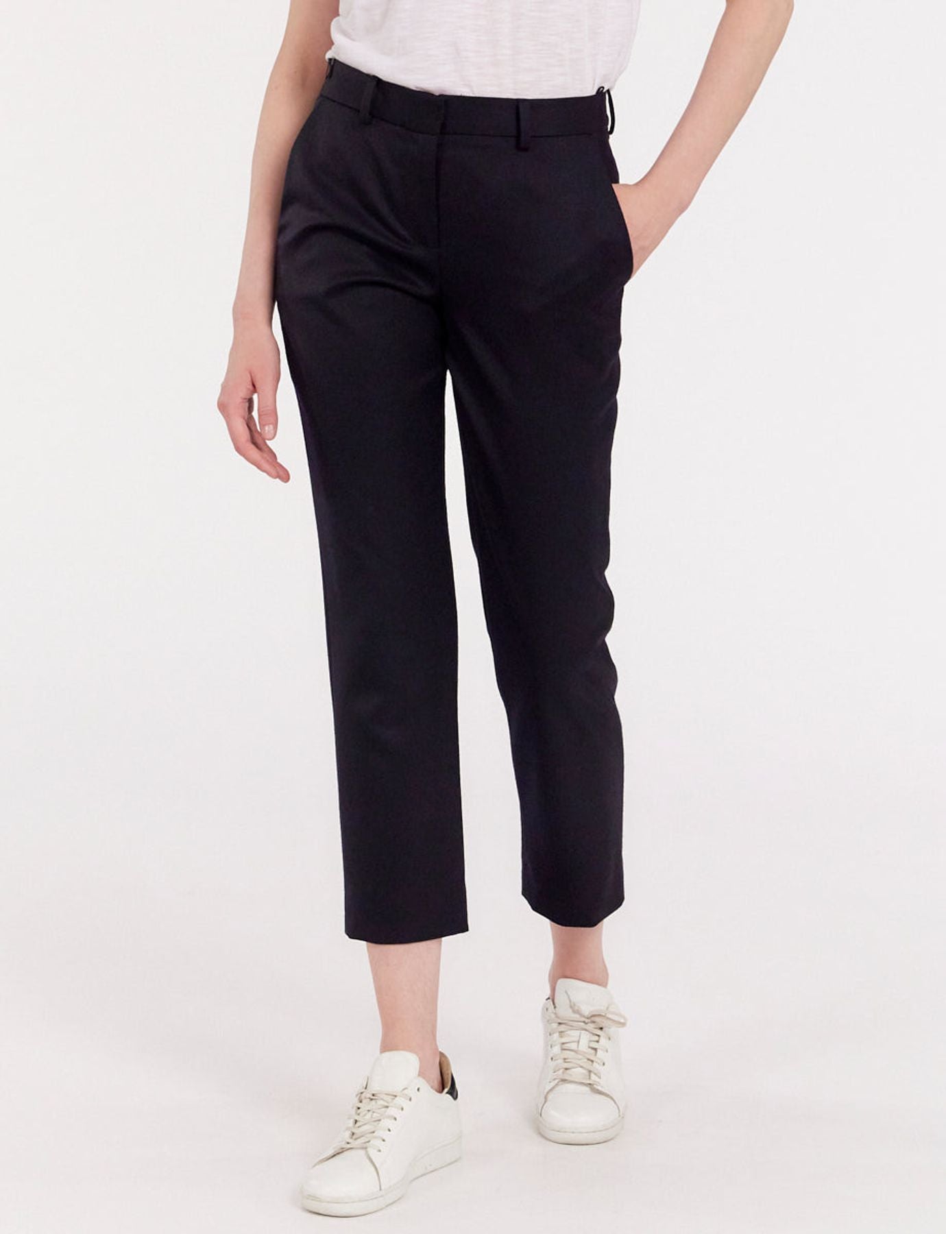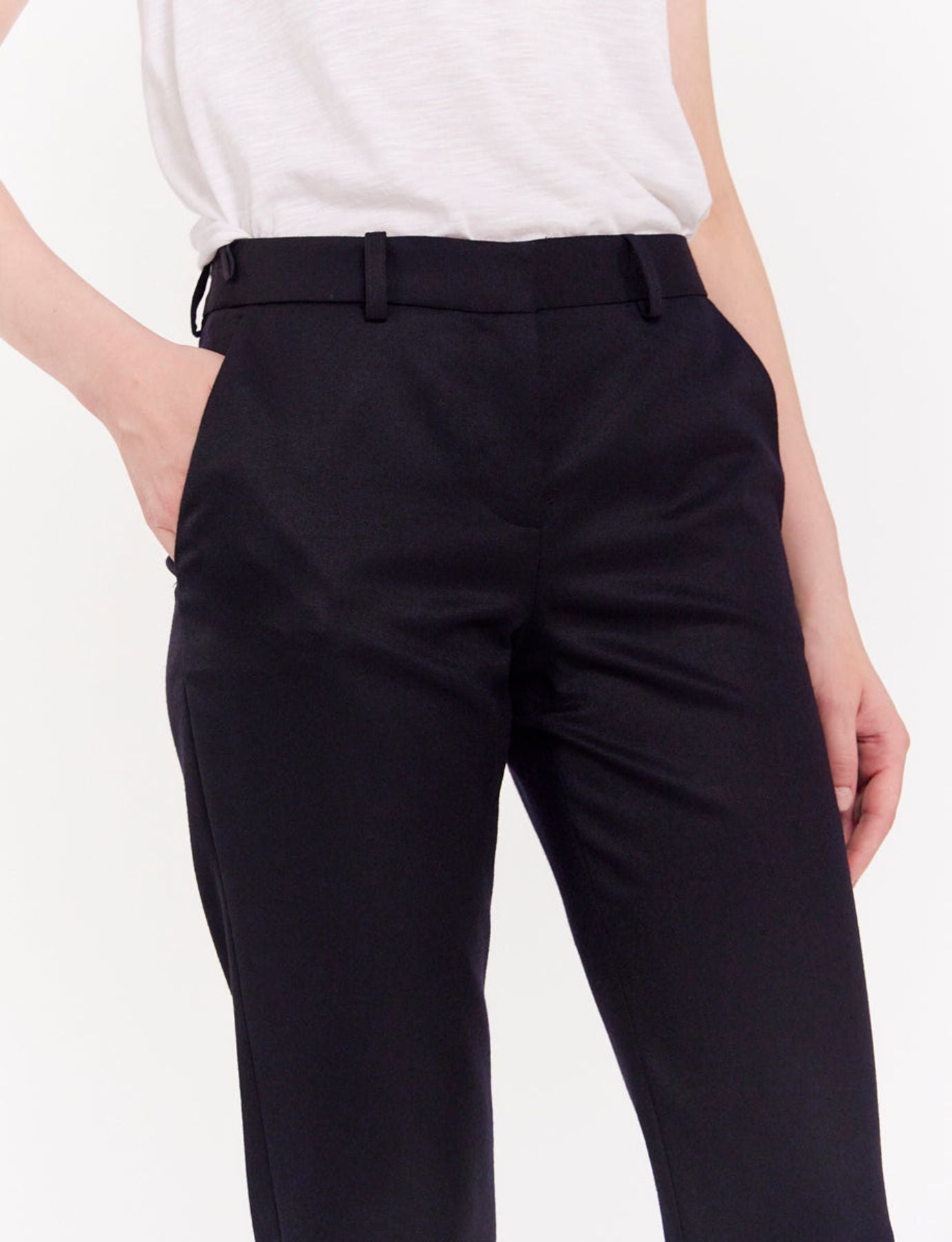 Sa coupe ajustée et sa longueur 7/8e font de cet incontournable une pièce versatile et très facile à porter qui convient à toutes les tailles. Il est absolument incontournable.Il est proposé ici dans un superbe tissu pure laine dans un bleu profond