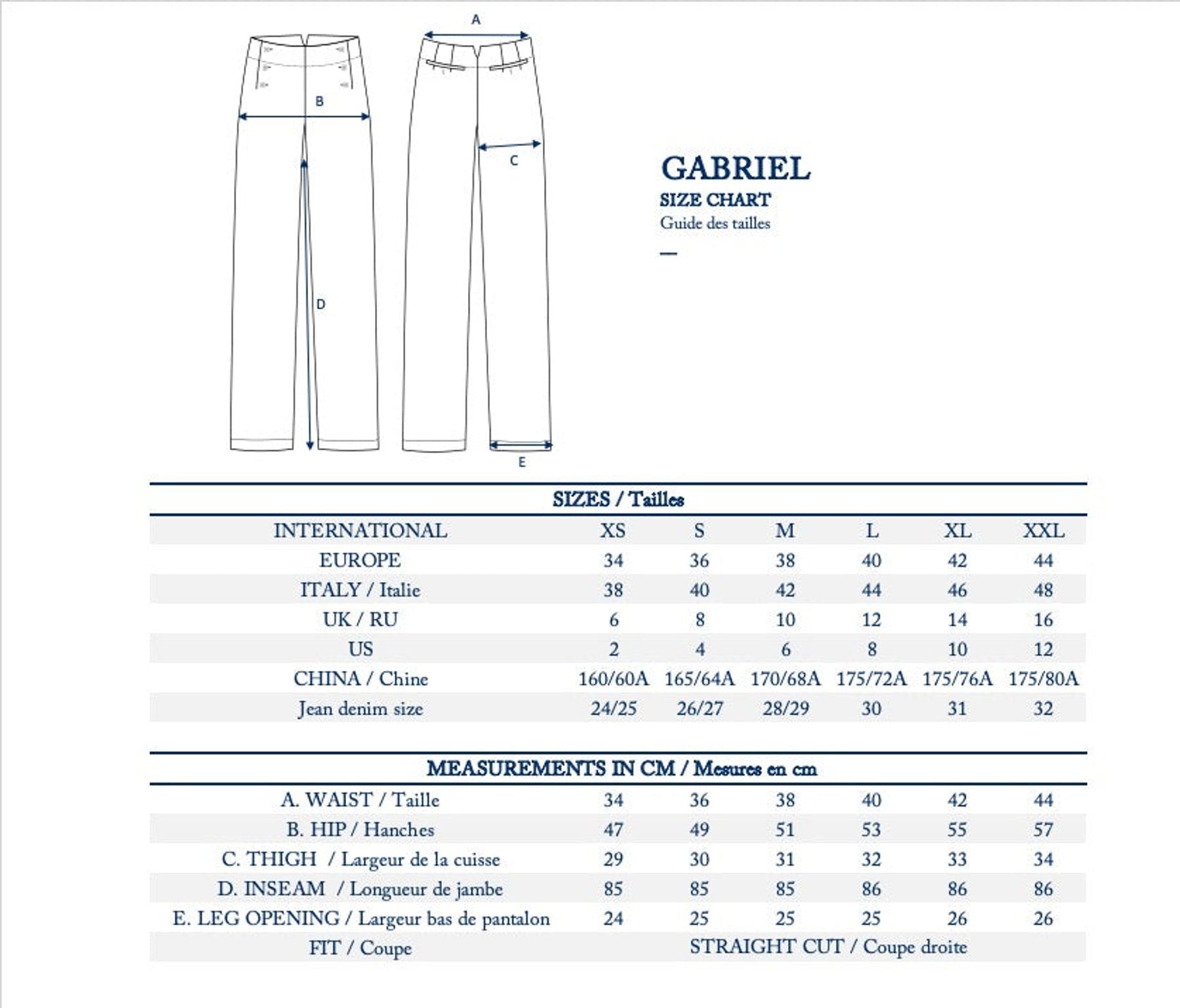 Size chart / Guide des tailles Man / Homme