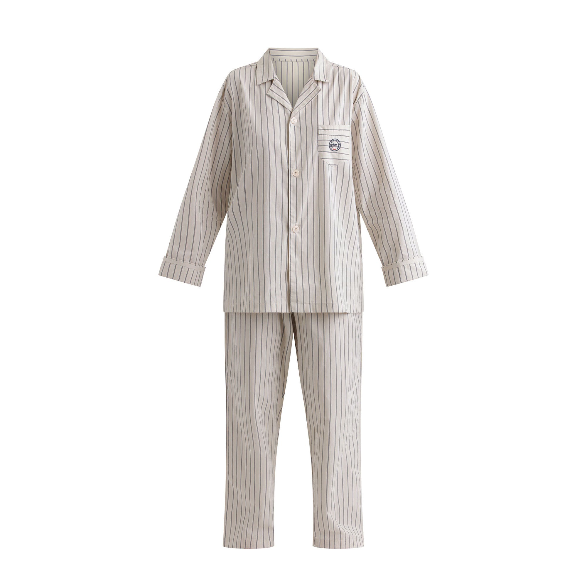 Alliez confort et élégance avec l’ensemble pyjama femme Dim x Ines de La Fressange en popeline Grise à rayures. Cet ensemble pyjama femme Dim x Ines de La Fressange combine confort et style avec sa matière fluide et ses rayures élégantes. La chemise légère à col classique offre une allure raffinée, rehaussée par une poche poitrine brodée. Le pantalon droit, avec sa ceinture élastique, assure une tenue agréable sans serrer. Les rayures verticales bleu clair et bleu foncé sur fond beige allongent visuellement la silhouette, tout en apportant une touche de fraîcheur. Un modèle chic et intemporel pour des nuits paisibles.