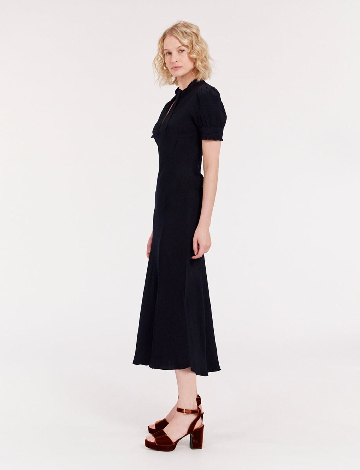 La robe Cerise est un best-seller, qui allie élégance et mode. Sa coupe et ses nombreux détails travaillés, en particulier son col goutte d’eau fermé par un noeud, en feront votre alliée lors d’événements décontractés ou habillés. Une robe vraiment indispensable, donc !