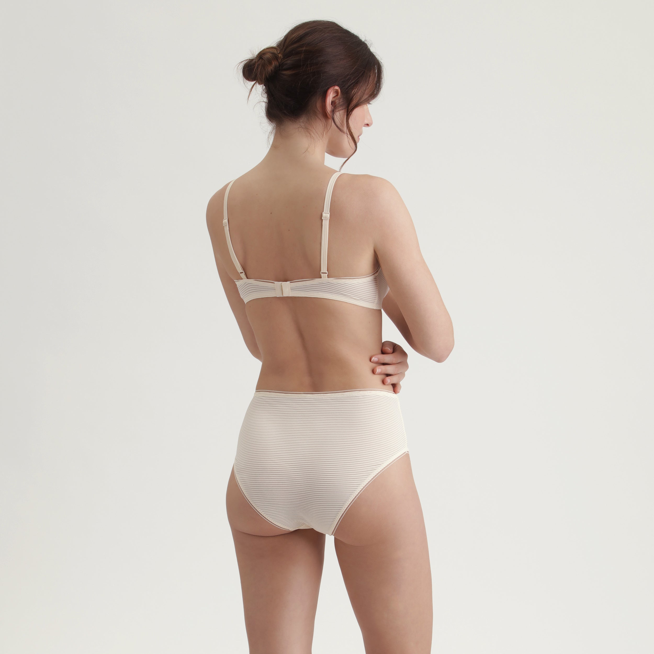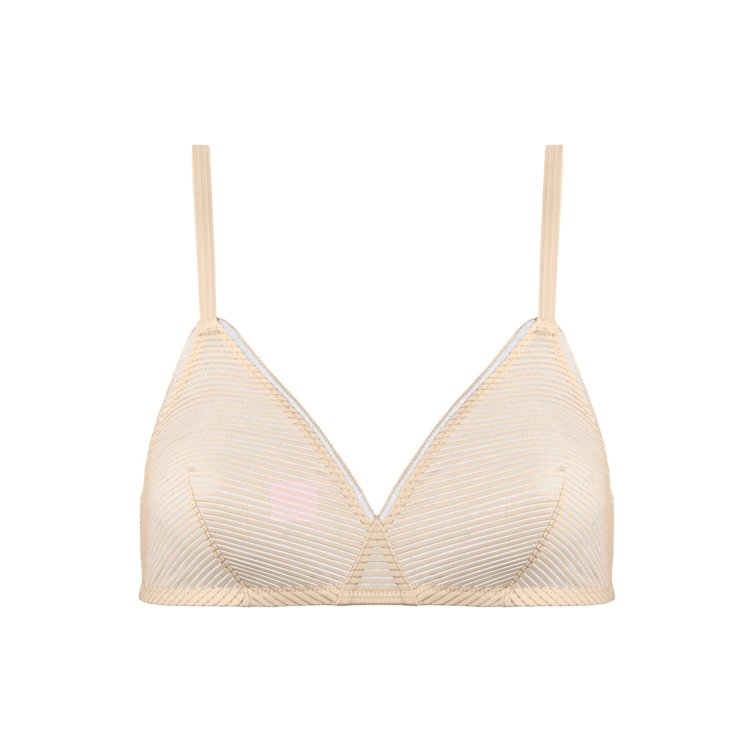 Minimaliste et raffiné, découvrez le soutien-gorge triangle sans armature à rayures Beige Macadamia Dim x Ines de La Fressange. Alliez confort et élégance à la française avec le soutien-gorge triangle Dim x Ines de La Fressange, qui s’impose comme le nouveau basique du quotidien. Sa matière souple et translucide, ornée de rayures opaques, dévoile la peau avec finesse et modernité. Avec sa forme triangle et ses bonnets fluides sans coque, ce soutien-gorge sans armatures Dim épouse délicatement la poitrine, et offre un maintien agréable. Discret dans son coloris Beige Macadamia, ce soutien-gorge femme est parfait sous une chemise claire ou un pull seconde peau.