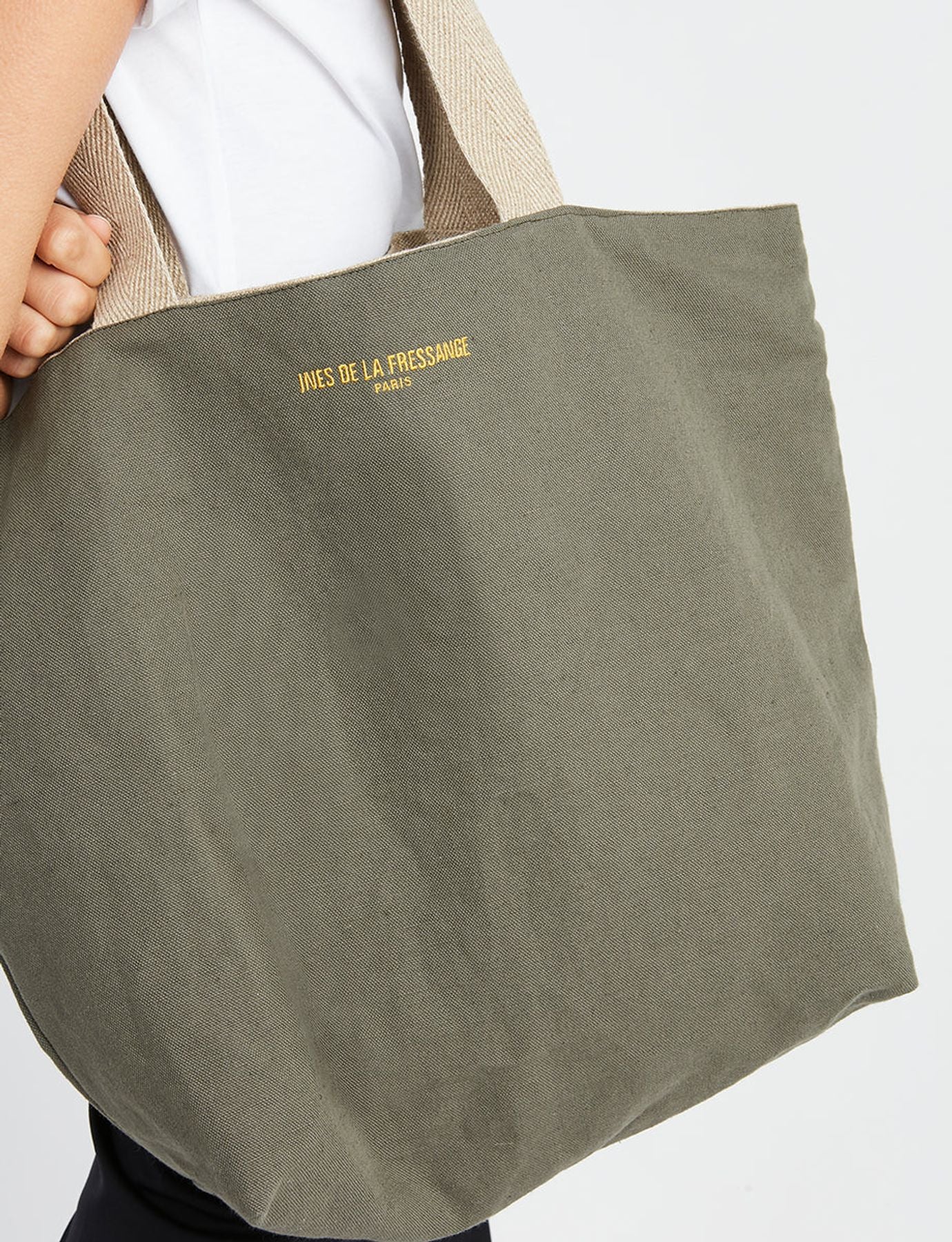 En mélange lin-coton, Lila pourra se marier avec beaucoup de tenues puisqu’il est réversible, l’une de ses couleurs est un écru-neutre. Notez sa double signature Ines de la Fressange Paris: brodée d’un côté, sur étiquette de l’autre. Fabrication France.