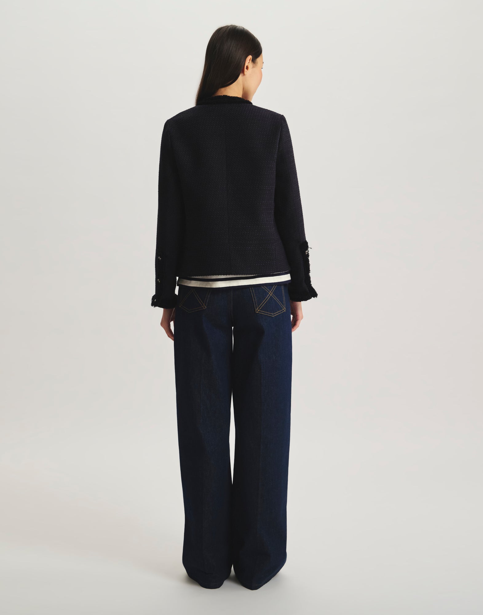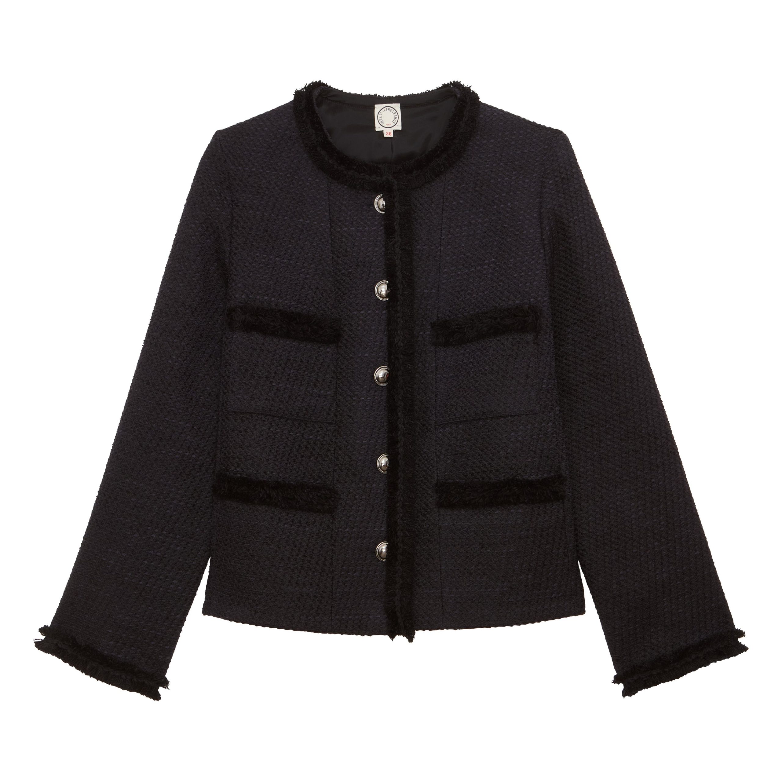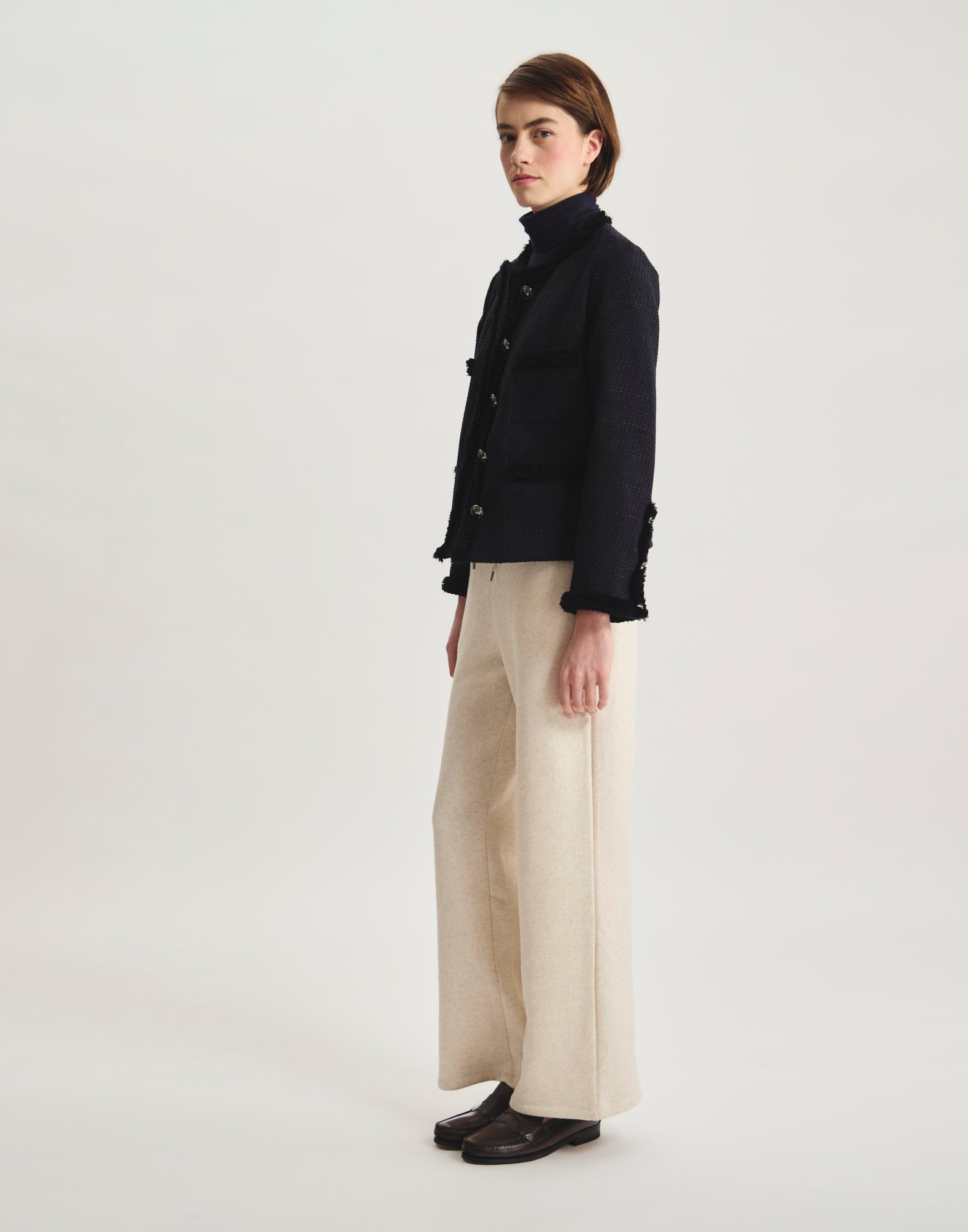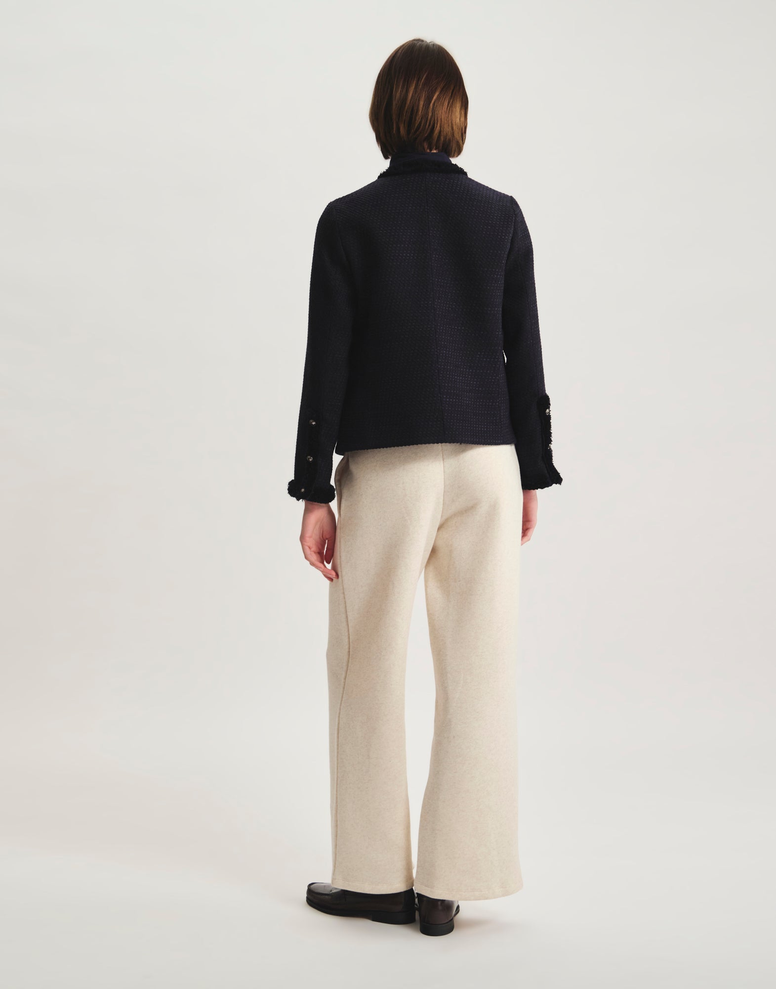Icône du vestiaire parisien, la veste Adelaïde Bleu Navy séduit par ses galons tissés délicatement apposés sur les bordures, ses poches plaquées et sa coupe structurée. Confectionnée dans un tissu de qualité à la texture subtile, elle conjugue confort et raffinement pour sublimer vos tenues, du bureau aux balades urbaines. Une pièce mi-saison qui signe une allure moderne et intemporelle, parfaite pour affronter la fraîcheur citadine avec style.