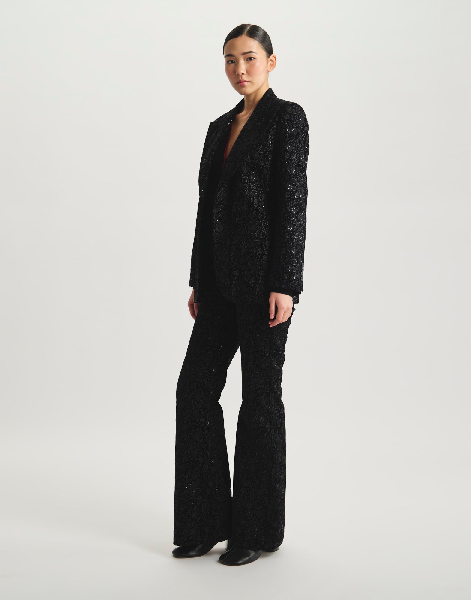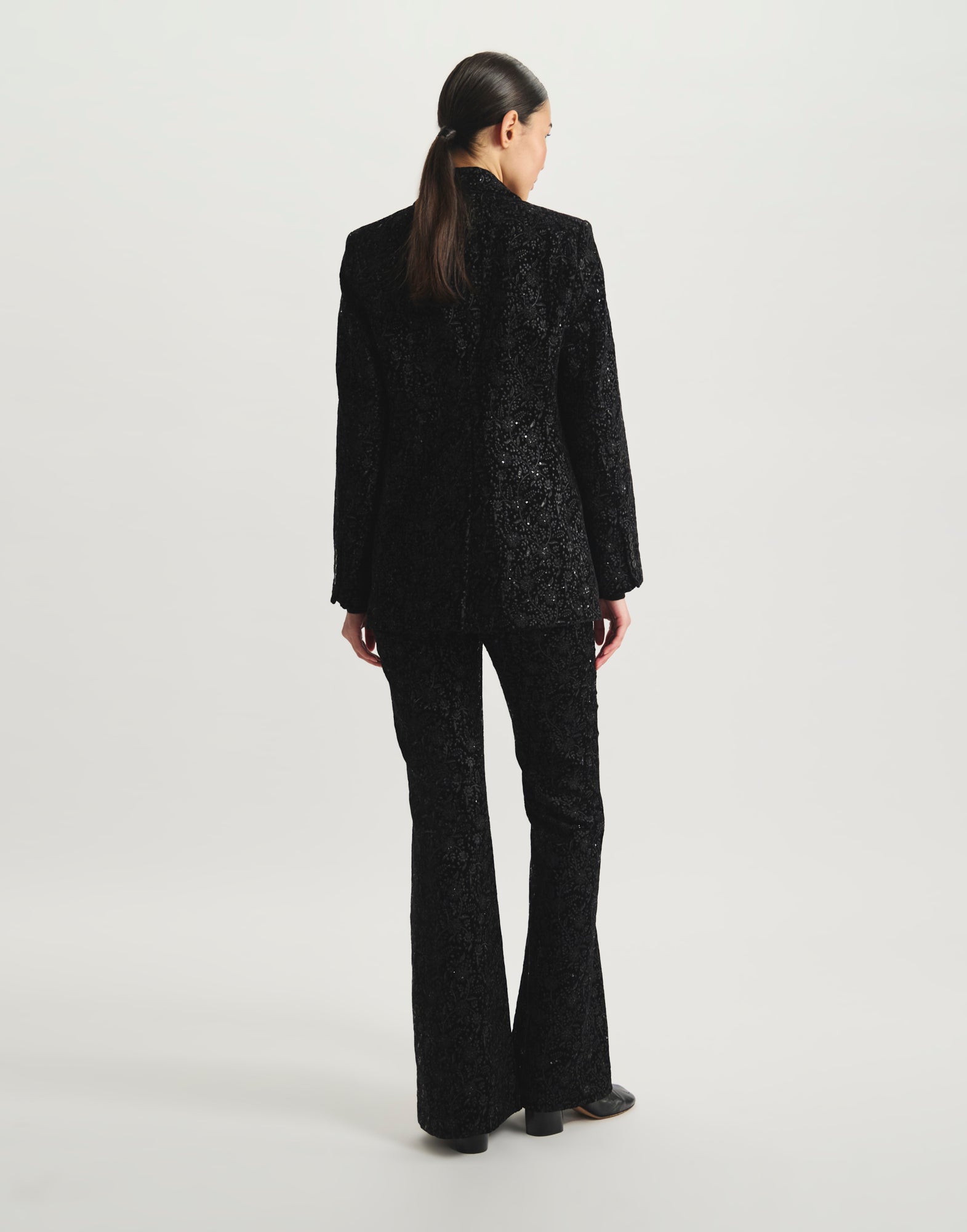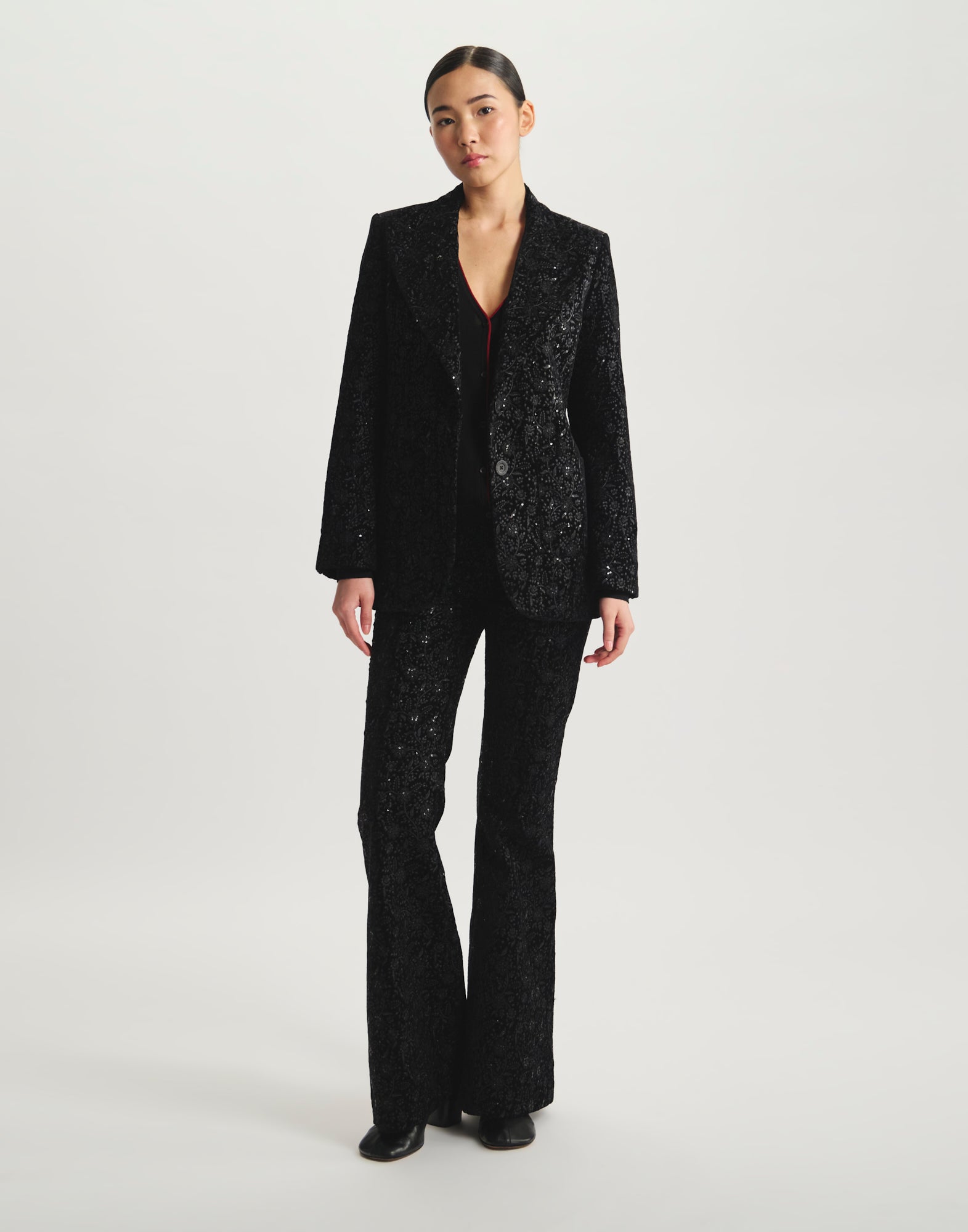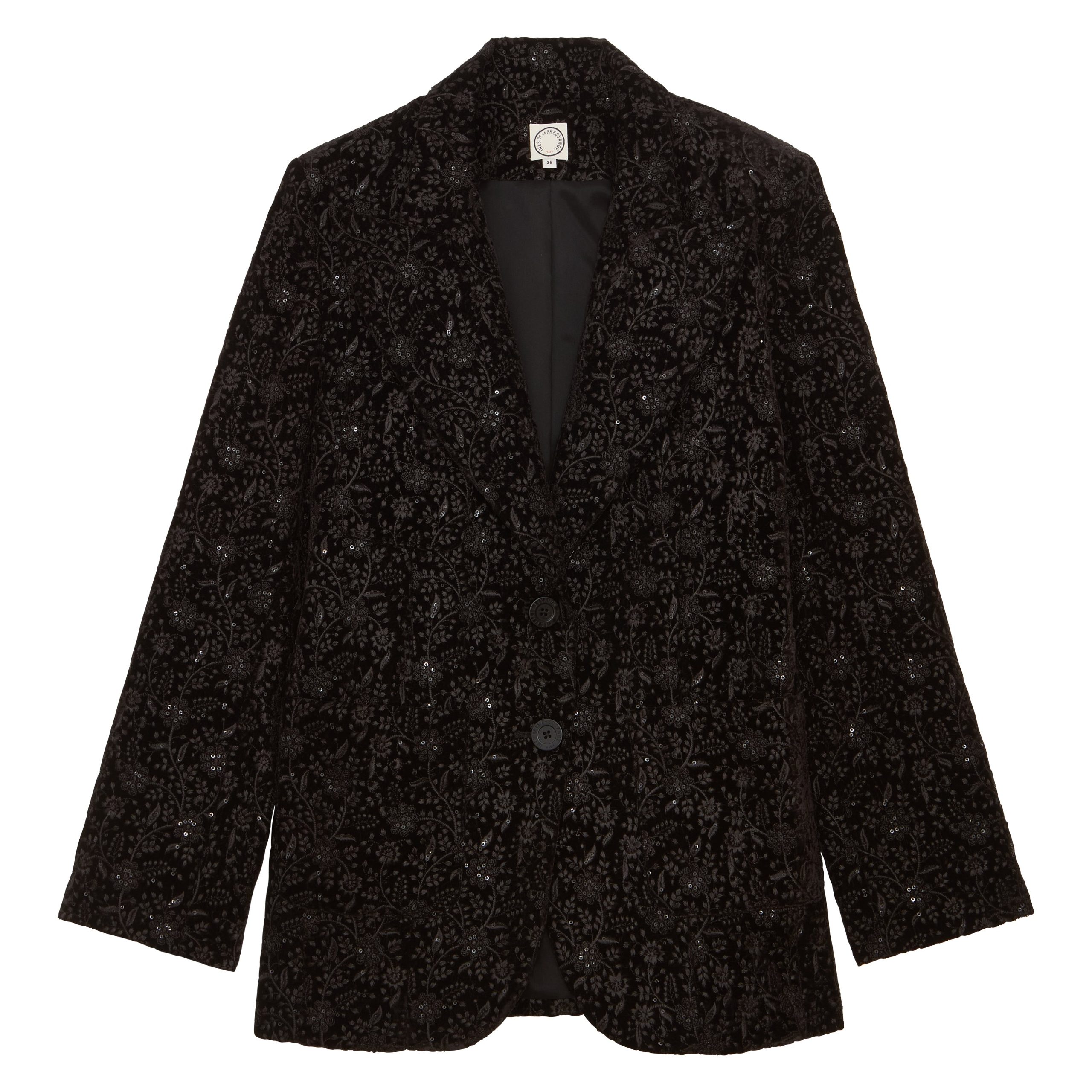 La veste Thadée impose une silhouette féminine et affirmée. Déclinée en noir avec broderies discrètes, elle revisite l’esprit tailleur avec modernité grâce à sa coupe cintrée et son boutonnage croisé. Elle allie légèreté, structure et élégance. Une pièce forte du vestiaire parisien, dessinée à Paris et fabriquée en France.