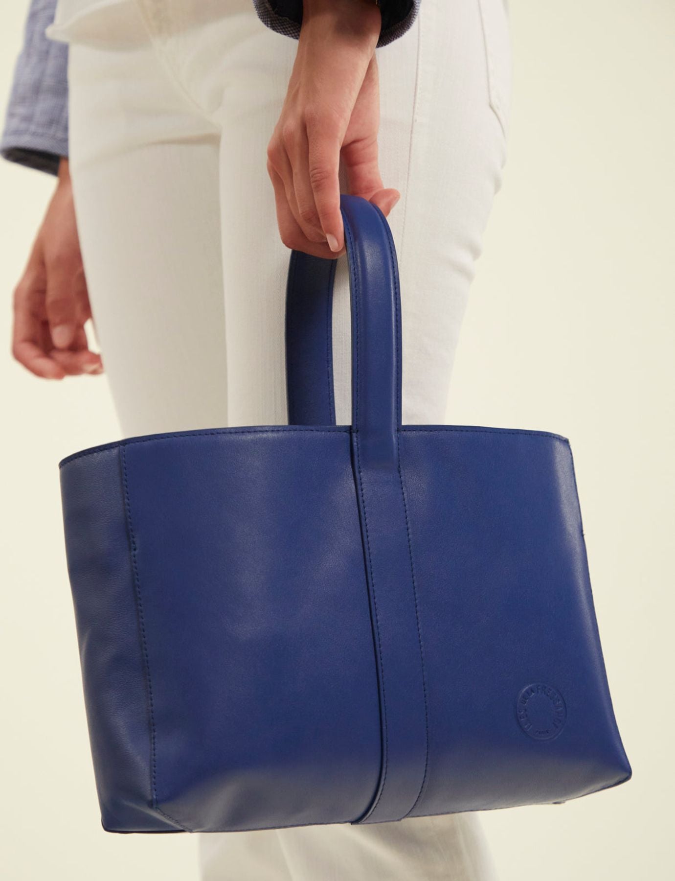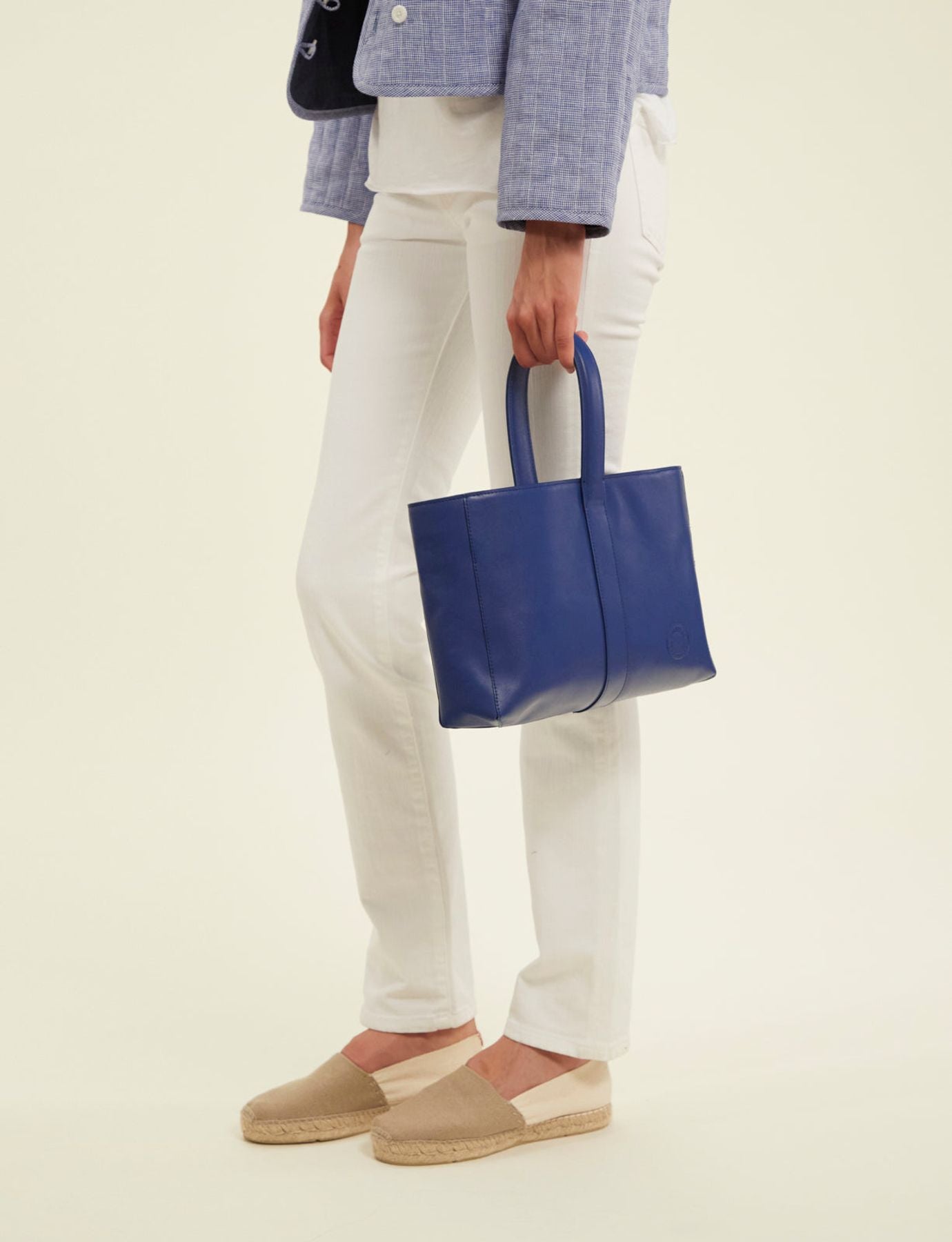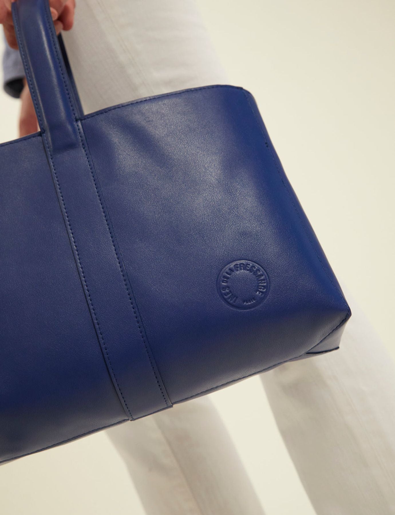 Ines de la Fressange Paris Femme Sac Cabas Cuir Léonore Petit Format Bleu Cobalt