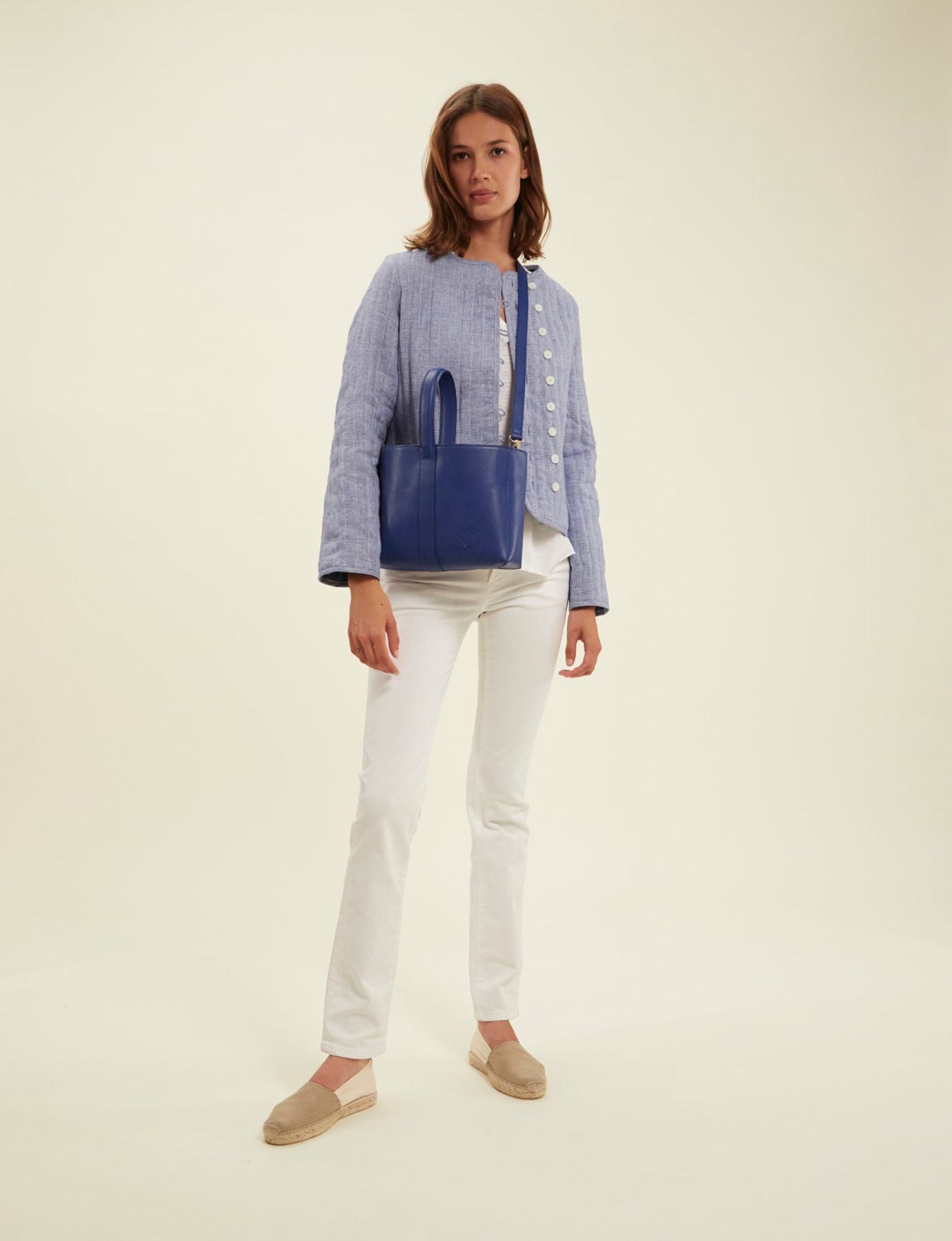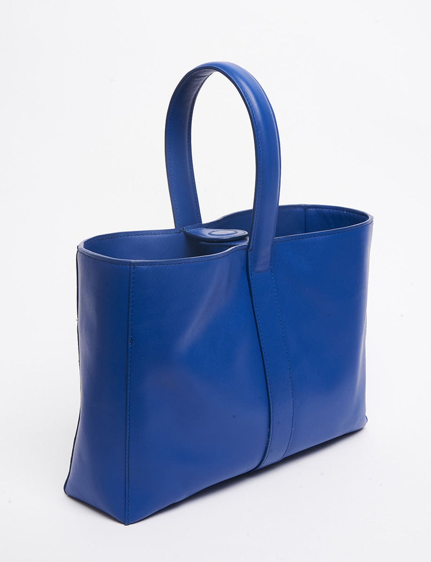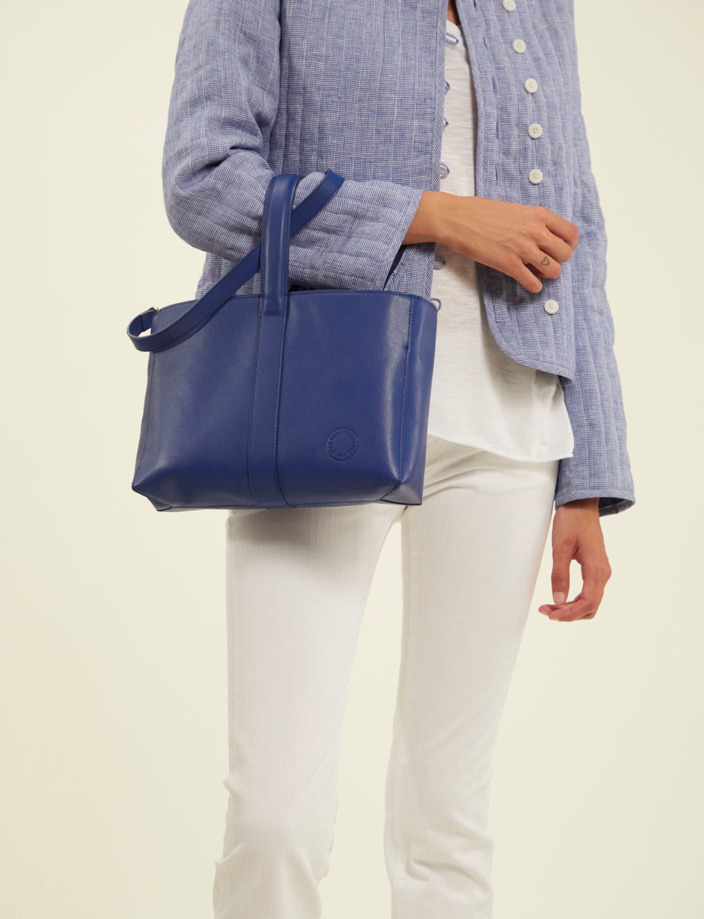 Ines de la Fressange Paris Femme Sac Cabas Cuir Léonore Petit Format Bleu Cobalt