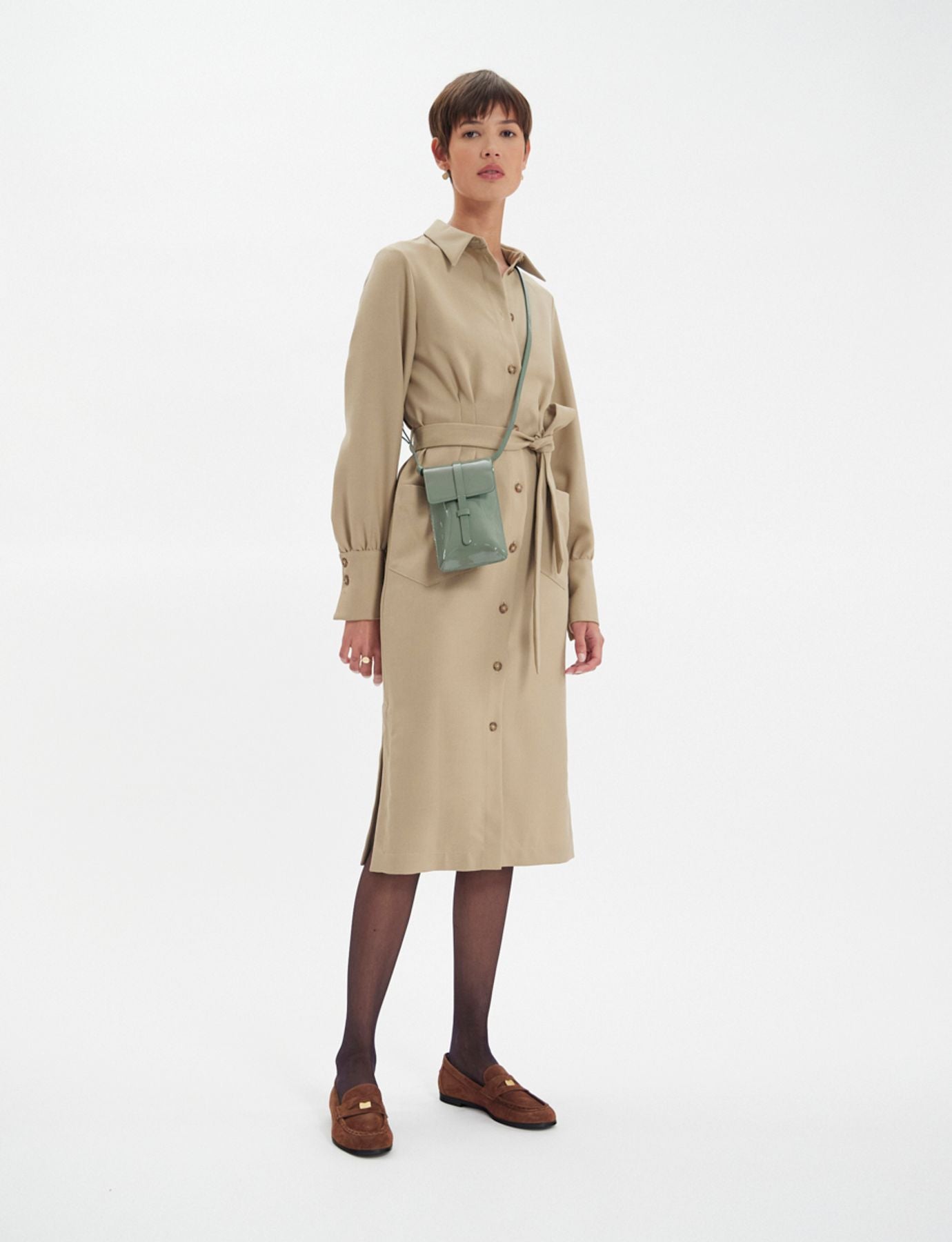 Ines de la Fressange Paris Femme Sacs Smartphone Bag Léonore Cuir Glacé Vert
